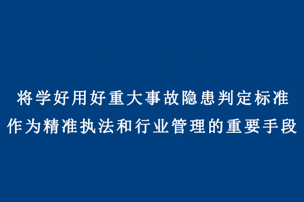 將學(xué)好用好重大事故隱患判定標(biāo)準(zhǔn)作為精準(zhǔn)執(zhí)法和行業(yè)管理的重要手段