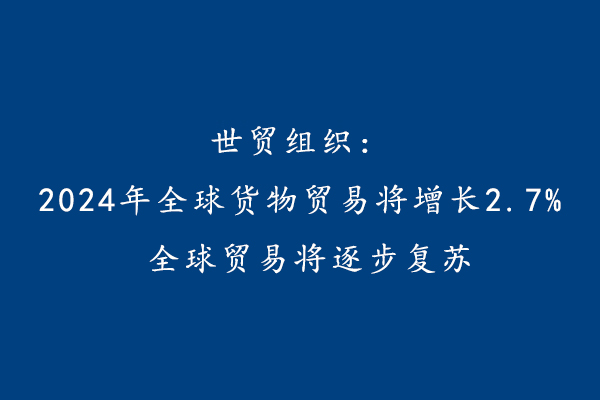 世貿(mào)組織:2024年全球貨物貿(mào)易將增長2.7% 全球貿(mào)易將逐步復(fù)蘇