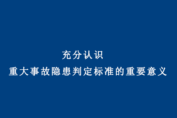 充分認識重大事故隱患判定標(biāo)準(zhǔn)的重要意義